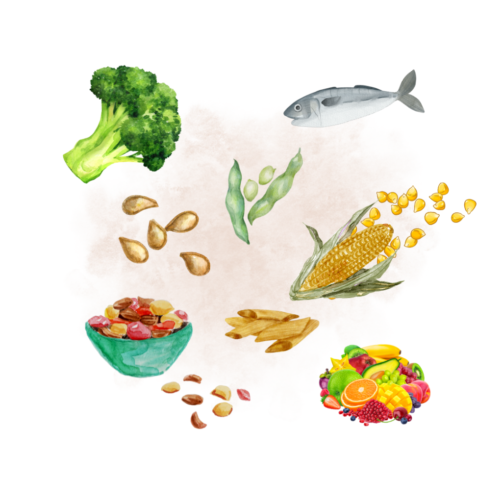 ‣ Ωμέγα-3 λιπαρά οξέα (λιπαρά ψάρια, ξηροί καρποί, σπόροι, σκούρα φυλλώδη λαχανικά, φασόλια)